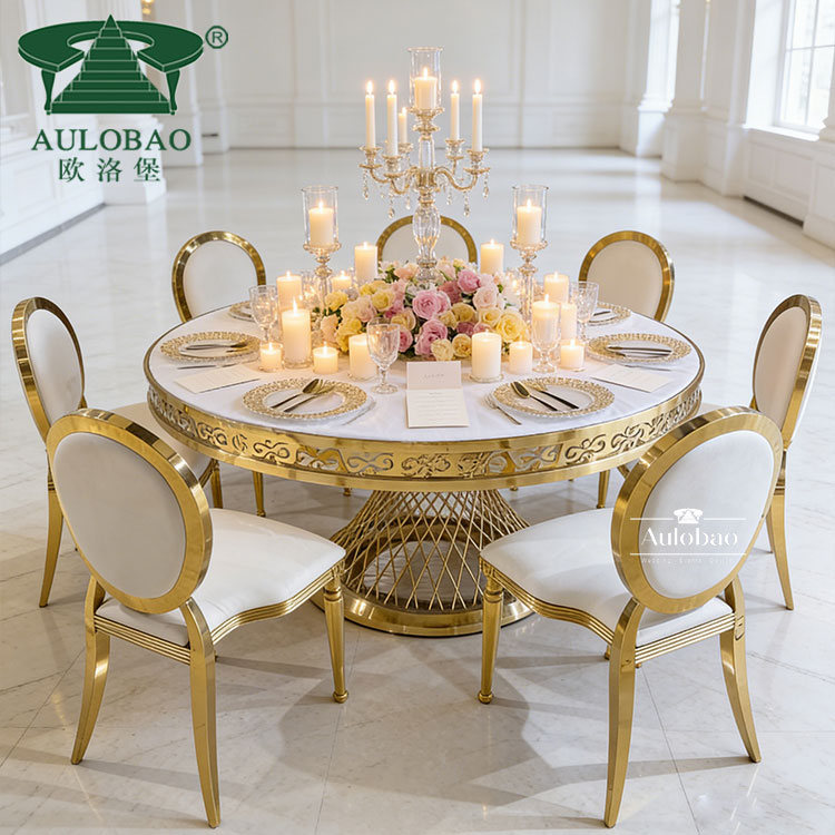 Luxury Gold Dining Table Set 6 For Wedding